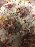 Our grandma's meatball recipe is handmade for you to enjoy on top of spaghetti baked under mozzarella cheese.
